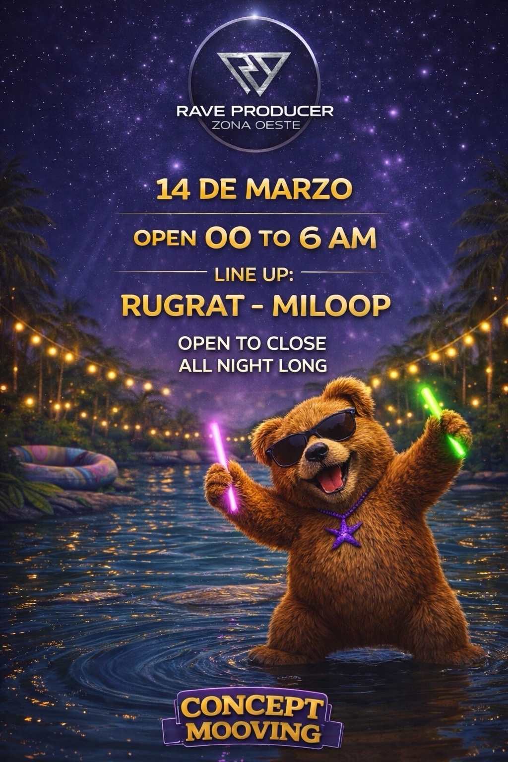 Con un formato OPEN TO CLOSE – ALL NIGHT LONG, los artistas RUGRAT y MILOOP serán los encargados de guiar el viaje musical completo, creando una atmósfera progresiva, intensa y envolvente que no va a parar.