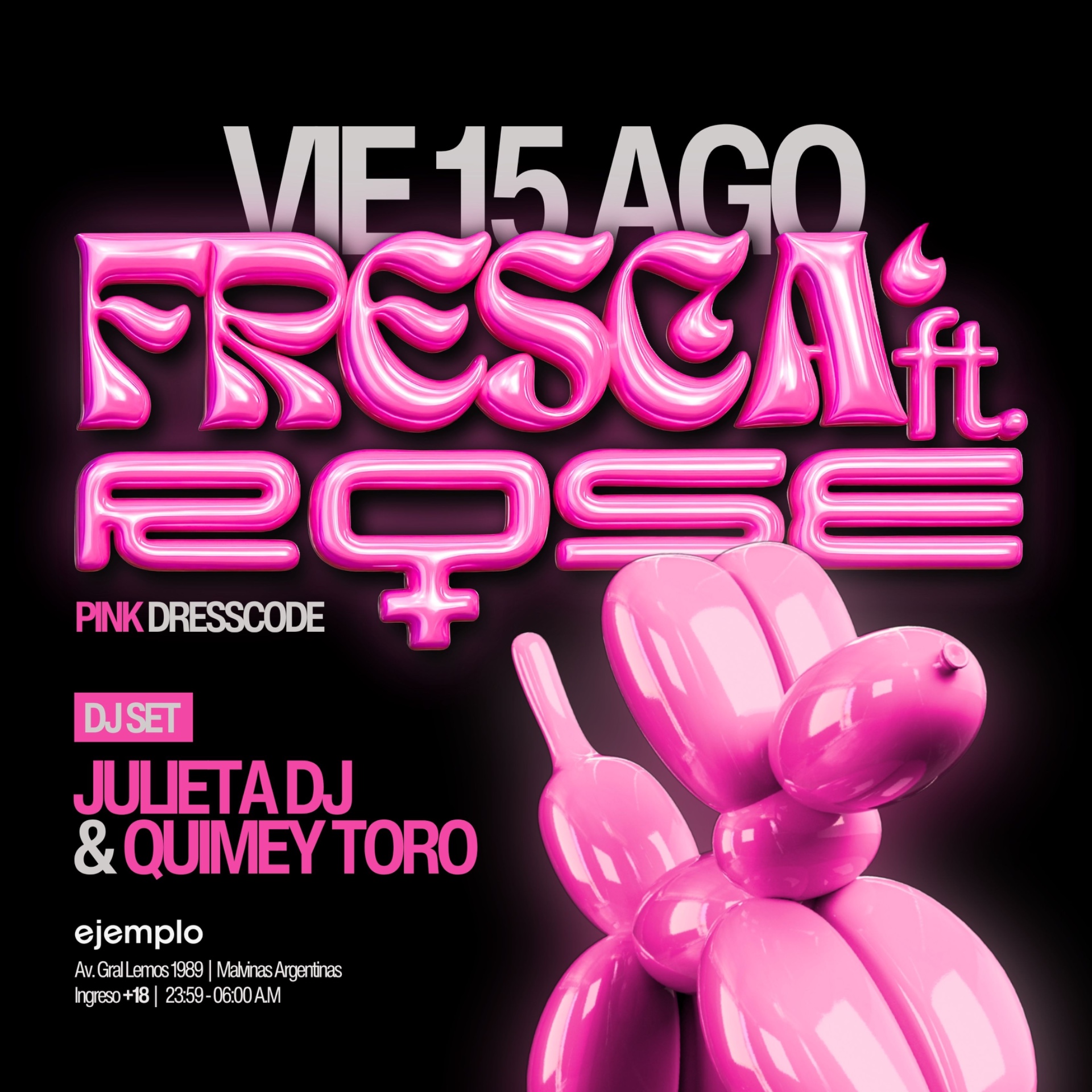 El Viernes 15/8 recibimos a @fiestarosegirls en Ejemplo (@ejemplobaroficial) y nos vestimos de ROSA para la ocasión 🎀