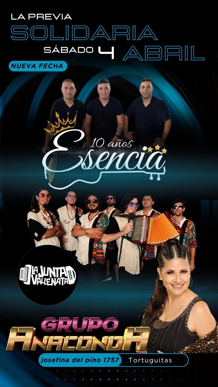 Únete a una noche de música y solidaridad con Esencia celebrando su décimo aniversario, acompañado por La Junta Vallenata y Grupo Anaconda. Disfruta de una experiencia musical única en Tortuguitas.