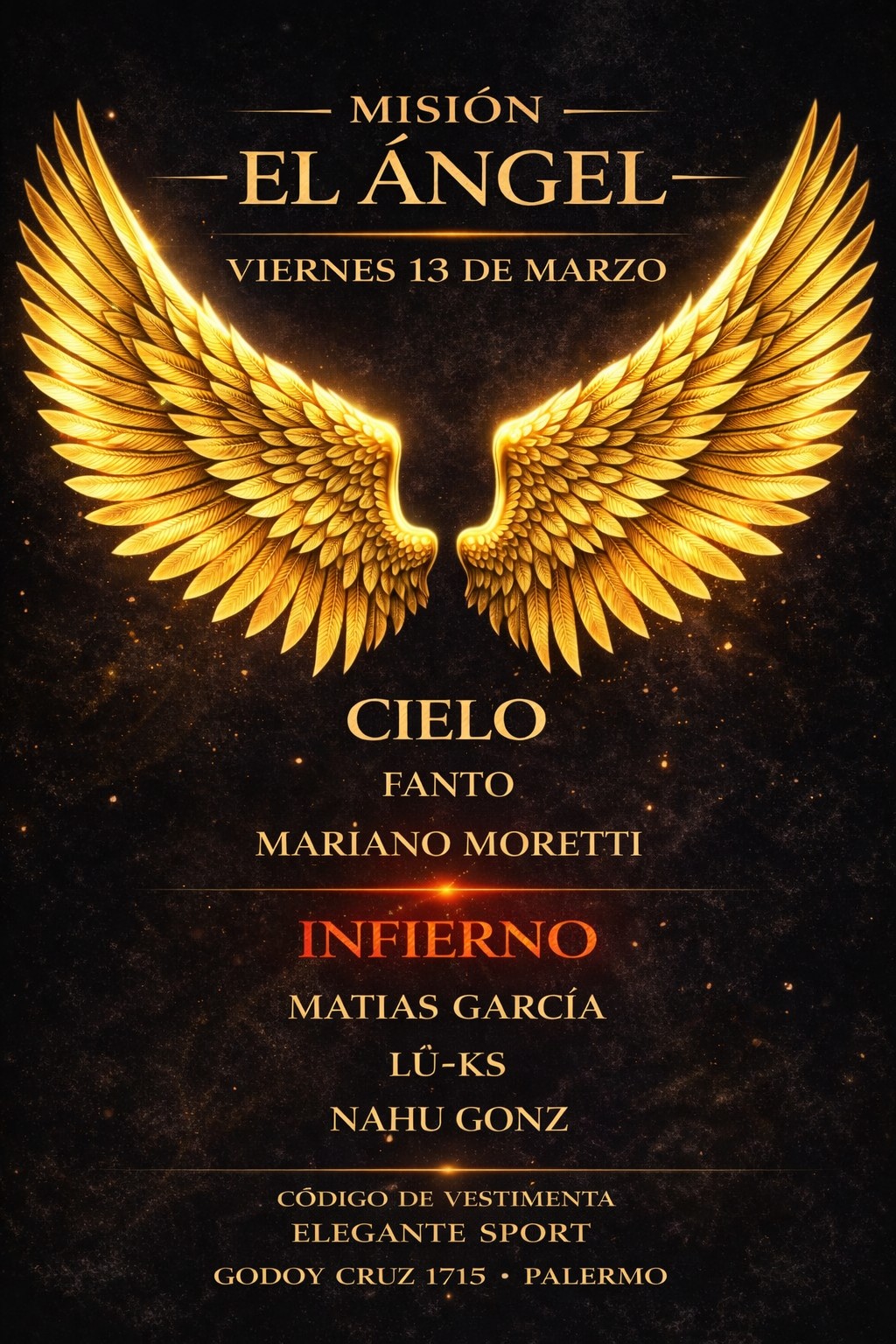 Un evento temático con una atmósfera celestial e infernal, destacando la música electrónica y un ambiente elegante.
