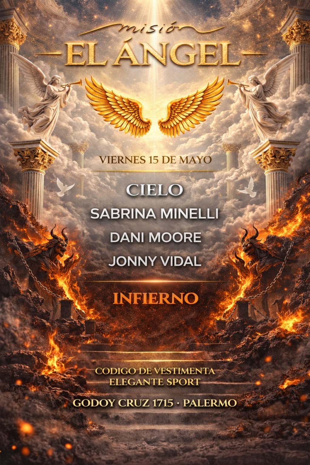 Prepárate para una noche épica que combina lo celestial y lo infernal, con música en vivo y una atmósfera única.